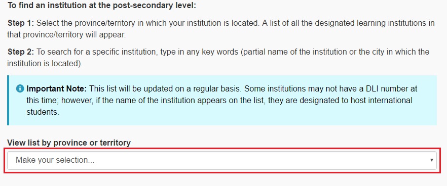 Truy cập địa chỉ: http://www.cic.gc.ca/english/study/study-institutions-list.asp