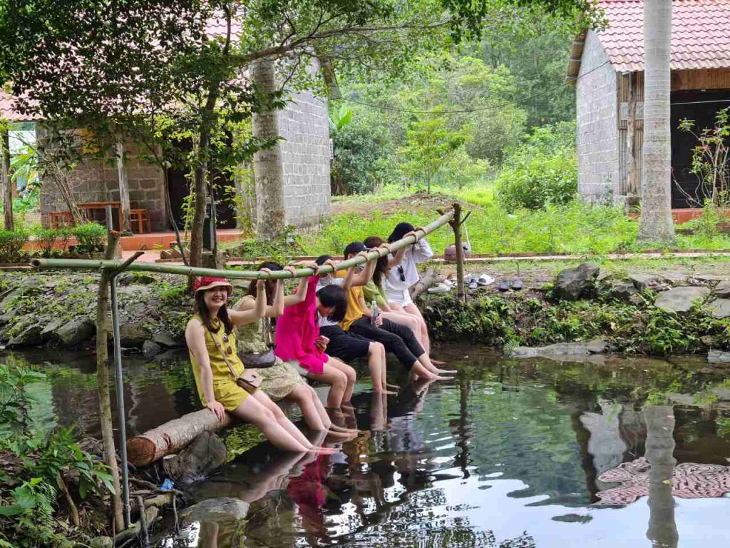 Hướng dẫn viên nhiệt tình kể cho công ty EduTrust nghe một số câu truyện về người dân nơi đây. Cả đoàn nhẹ nhàng tản bộ thưởng thức cảnh quan của ngôi làng. Sau đó cùng nhau trải nghiệm MASSAGE CÁ bên dòng suối tự nhiên. Tiếp theo, cả đoàn quay trở lại tàu.