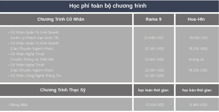 Ba cơ sở đào tạo hiện đại, tiêu chuẩn toàn cầu. Tại Bangkok: Rama 9 và Asoke, và tại HuaHin. Gồm các chương trình kinh doanh, IT, truyền thông và thiết kế, đặc biệt các chương trình bằng đôi cực kỳ hấp dẫn.
