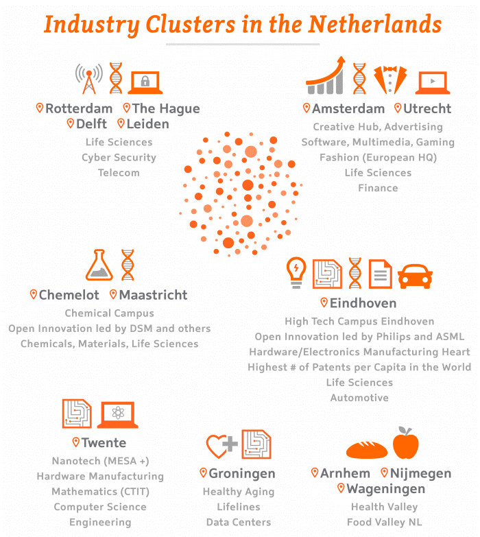 Là đất nước đi đầu thế giới trong việc thiết kế sản xuất và phát triển các thiết bị và sản phẩm công nghệ cao, các công ty Hà Lan là luôn là những người tiên phong trong cả nghiên cứu cho chính phủ và tư nhân tư và sự phát mở với khu vực Brainport Eindhoven được mệnh danh là “khu vực thông minh nhất thế giới” vào năm 2011.Cách các công ty, tổ chức nghiên cứu và chính phủ Hà Lan luôn cùng nhau làm việc để bồi dưỡng kiến thức và tạo ra nền công nghệ tiên tiến. Điều này đã dẫn đến sự hợp tác mạnh mẽ giữa các nhà sản xuất, nhà cung cấp chuyên ngành và các tổ chức tri thức.