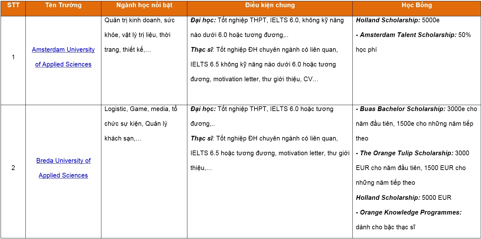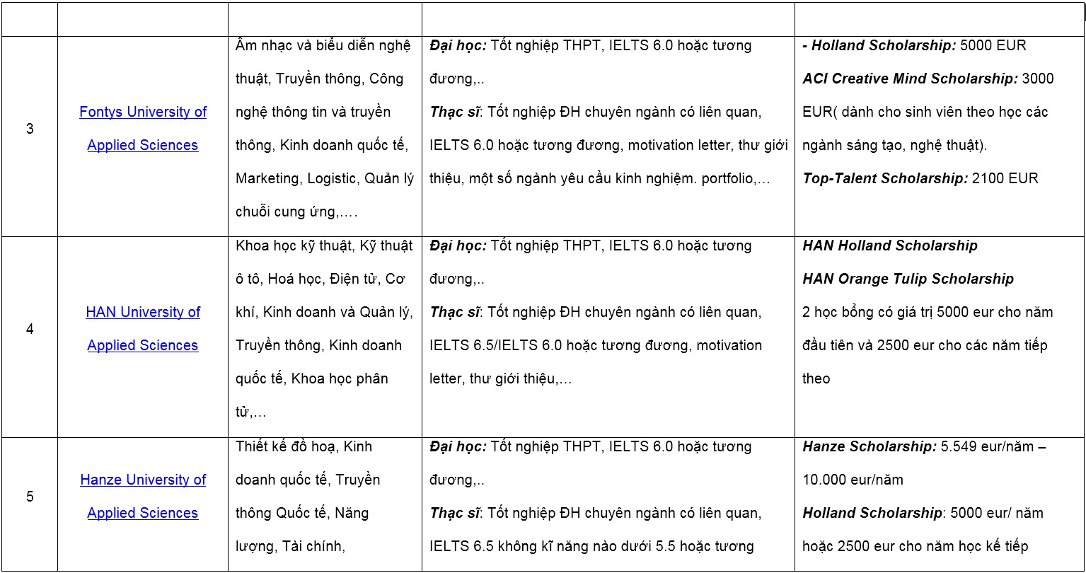 Danh sách các trường Đại học Khoa học Ứng dụng tại Hà Lan (Phần 1)