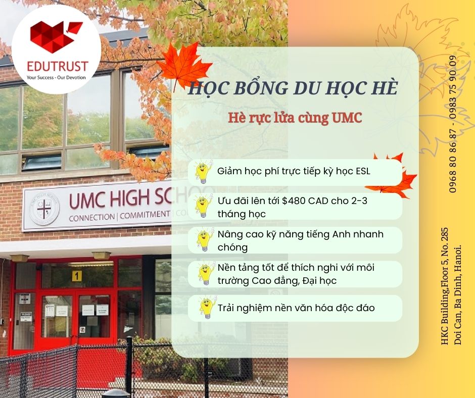 UMC giảm ngay 10% học phí cho học sinh có visa du lịch du học Canada khi tham gia khóa học ESL trong tháng 6,7,8 năm 2024! ![]()