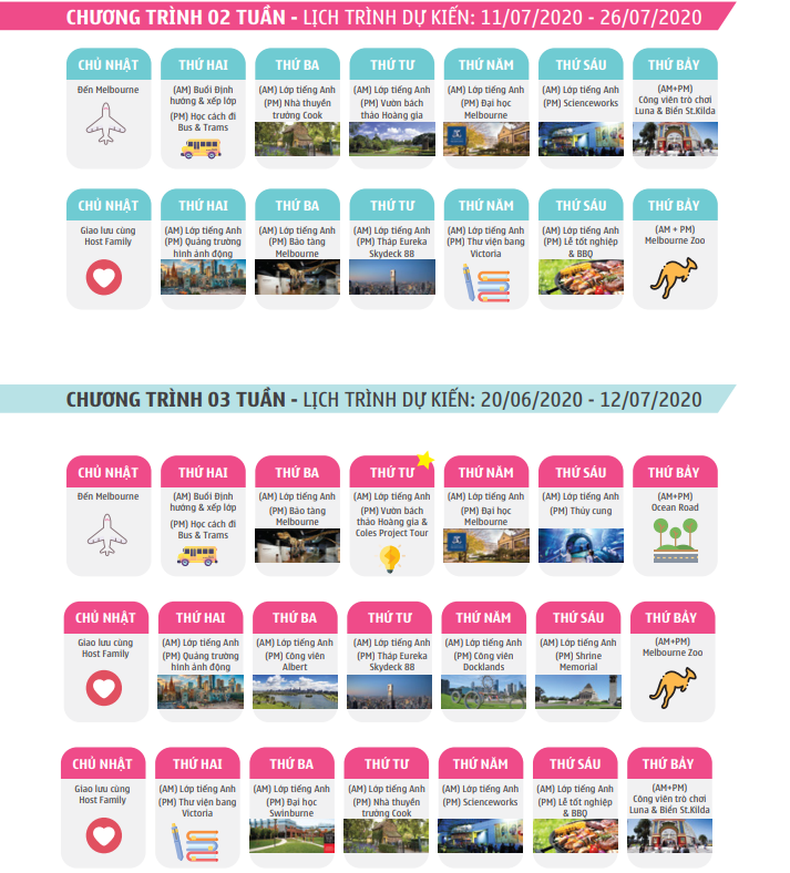 Tham quan & thực hành tiếng Anh tại các điểm đến nổi tiếng tại Úc sau buổi học hàng ngày và cả ngày vào thứ 7 tại Melbourne. Thành phố Melbourne hứa hẹn đem đến những trải nghiệm thú vị, tự lập và trưởng thành hơn sau 2 – 3 tuần cho các bạn học sinh.