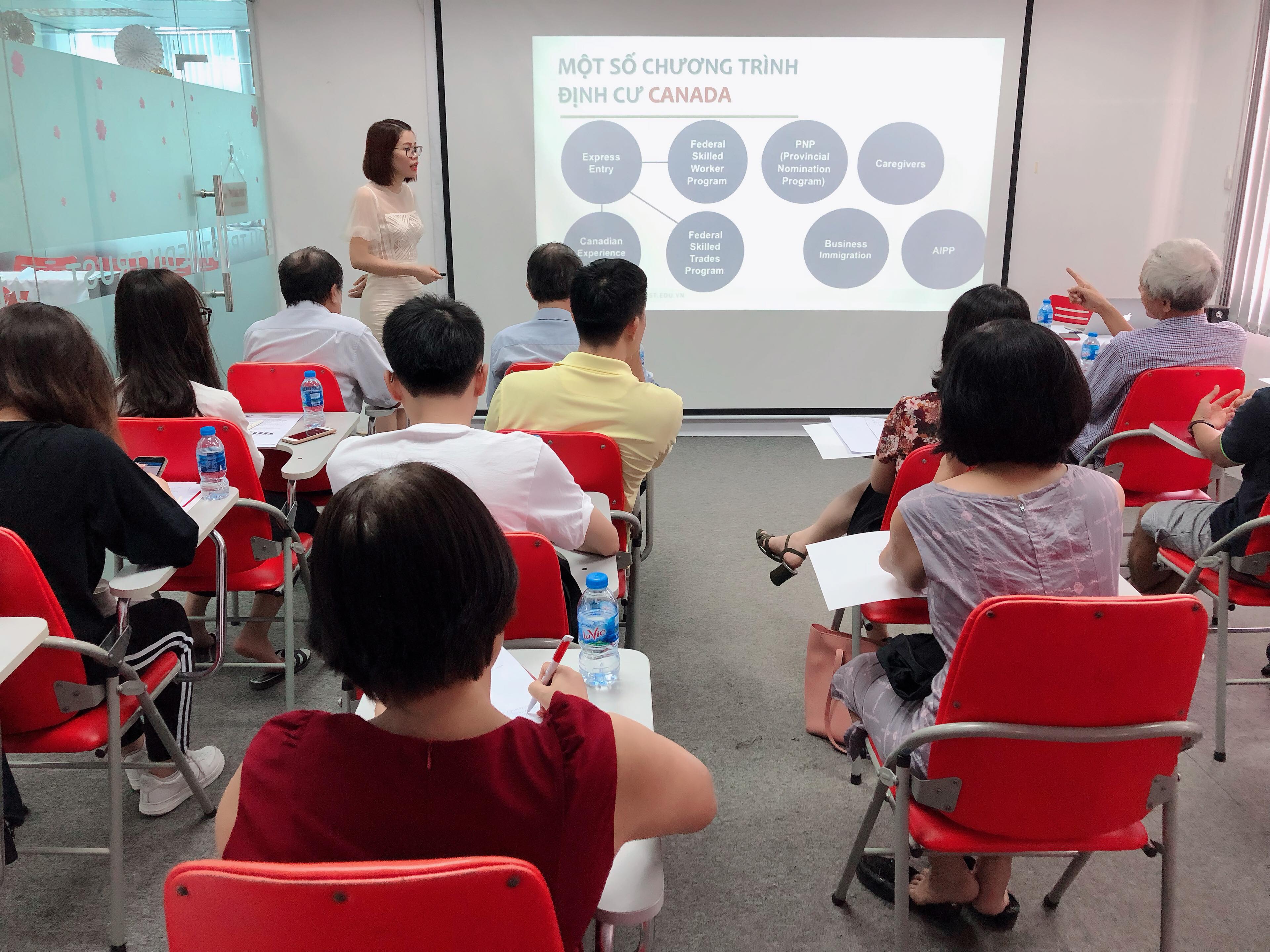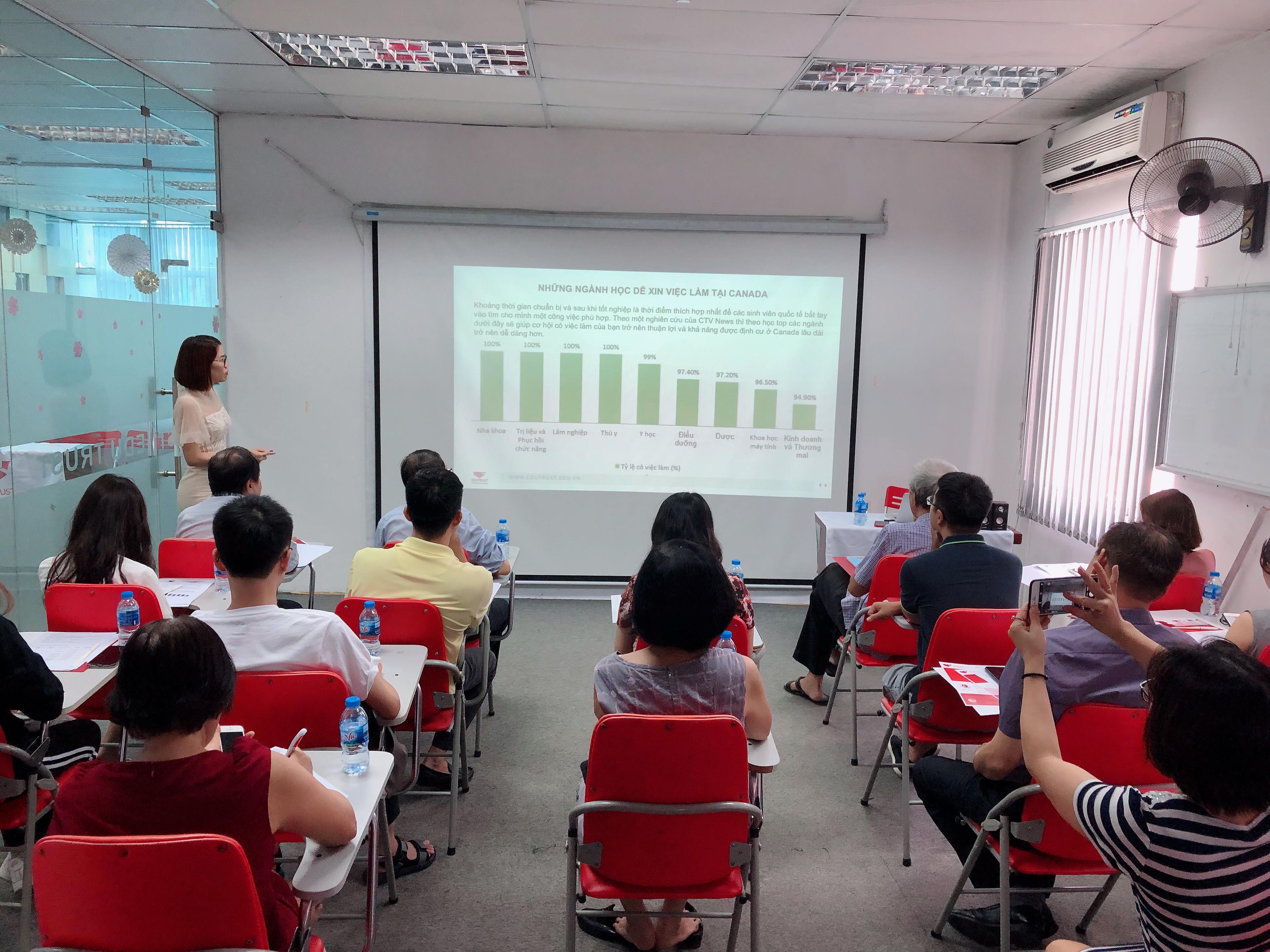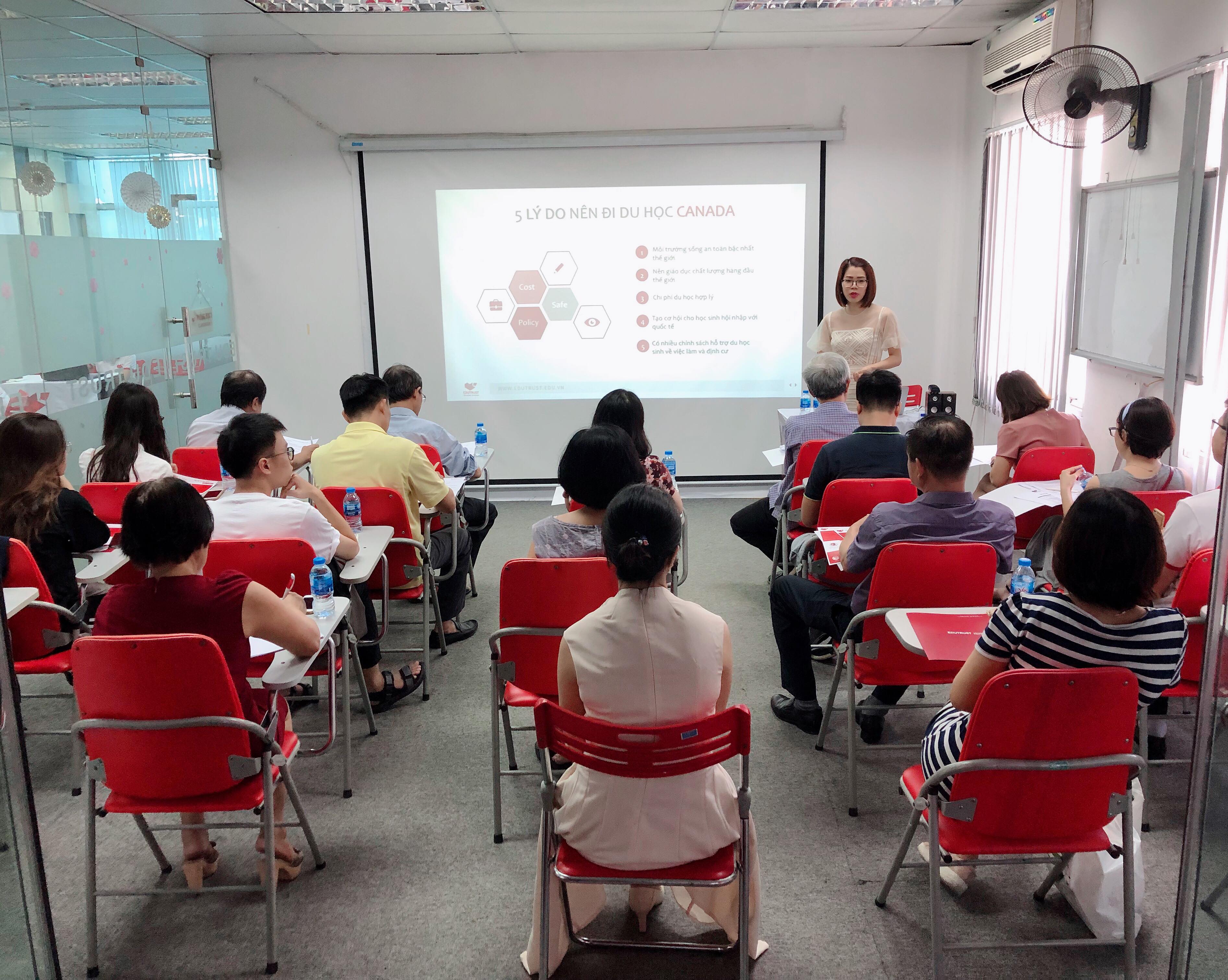 🔹 Sáng Thứ 7 ngày 12/10/2019 vừa qua, Du Học EduTrust đã tổ chức buổi hội thảo Canada #2_trong_1 “MỘT NGƯỜI DU HỌC – CẢ GIA ĐÌNH NHẬN VISA VÀ CÁC CON ĐƯỜNG ĐỊNH CƯ NĂM 2020” nhằm mục đích chia sẻ chính xác về lộ trình du học, định cư Canada và giúp sinh viên định hướng con đường tương lai đúng đắn nhất cho bản thân. Buổi hội thảo đã diễn ra vô cùng thành công tốt đẹp với sự có mặt của nhiều quý vị phụ huynh và các bạn học sinh tại Thành phố Hà Nội và các vùng lân cận.