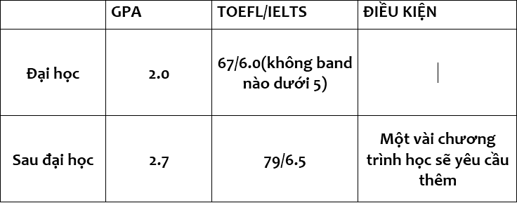 -Yêu cầu GPA đại học từ 3.5 trờ lên