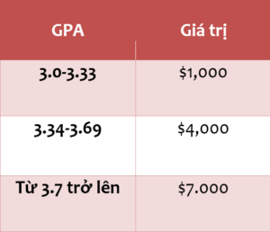 1. Học bổng dựa dành cho Sinh viên quốc tế dựa vào GPA để đánh giá.