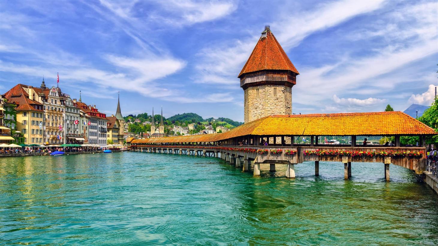 Luzern đẹp lắm các bạn ạ! Và còn yên bình nữa. Luzern nổi tiếng với cây cầu gỗ được xây dựng từ thế kỷ XIV mang phong cách cổ điển giữa lòng thành phố hiện đại và xinh đẹp. Nơi đây nổi tiếng với con đường đồng hồ dọc theo mạn sườn của Old Town.
