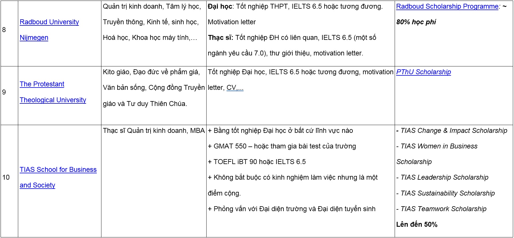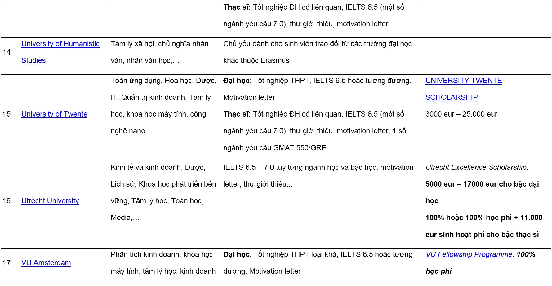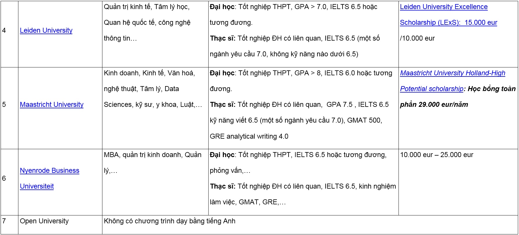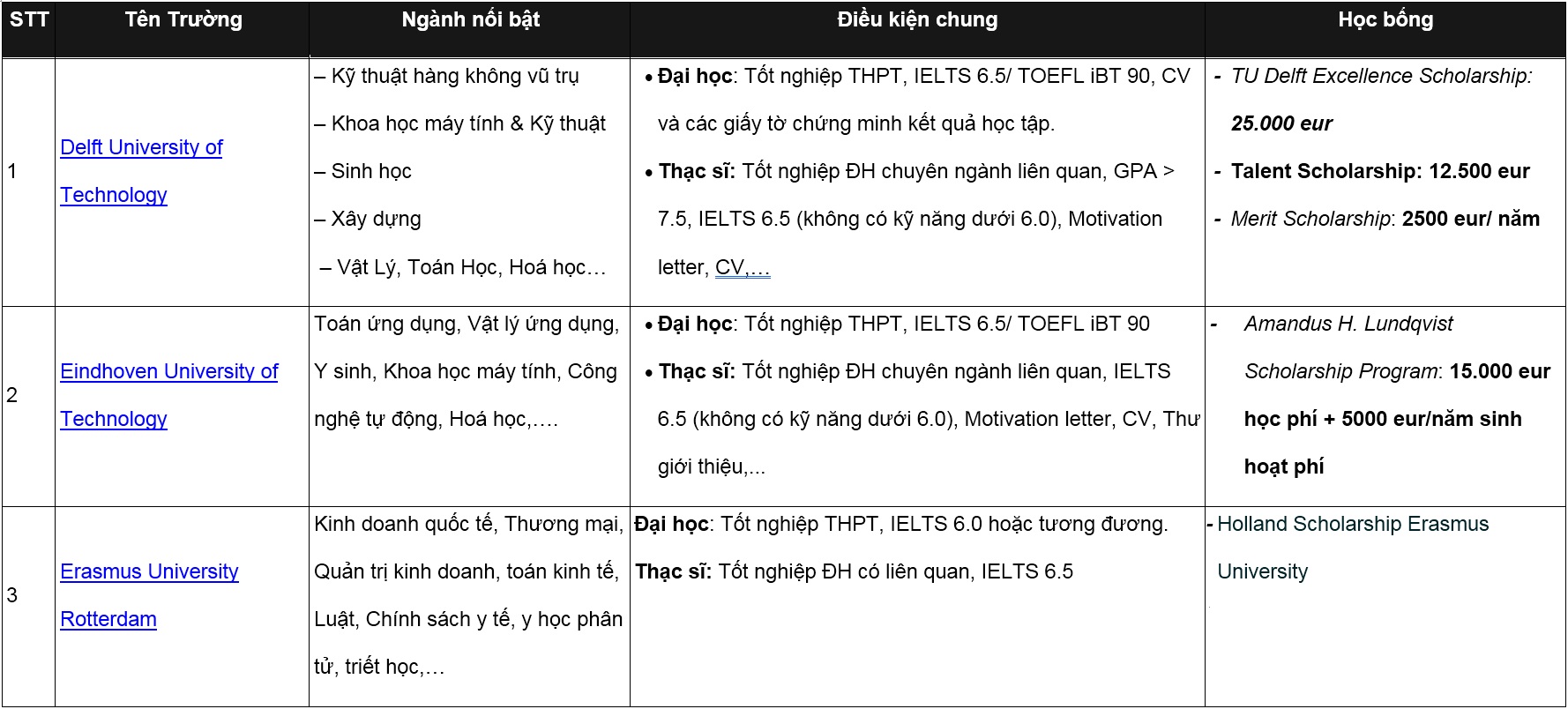 Cơ hội nhận học bổng toàn phần đến từ các trường Đại học Nghiên cứu tại Hà Lan
